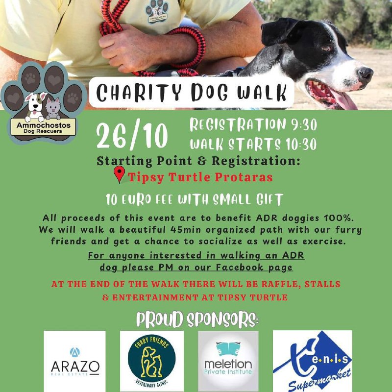 Присоединяйтесь к нам в субботу, 26 октября, в 9:30 утра у Tipsy Turtle Bar в Протарасе на замечательной благотворительной прогулке с собаками!