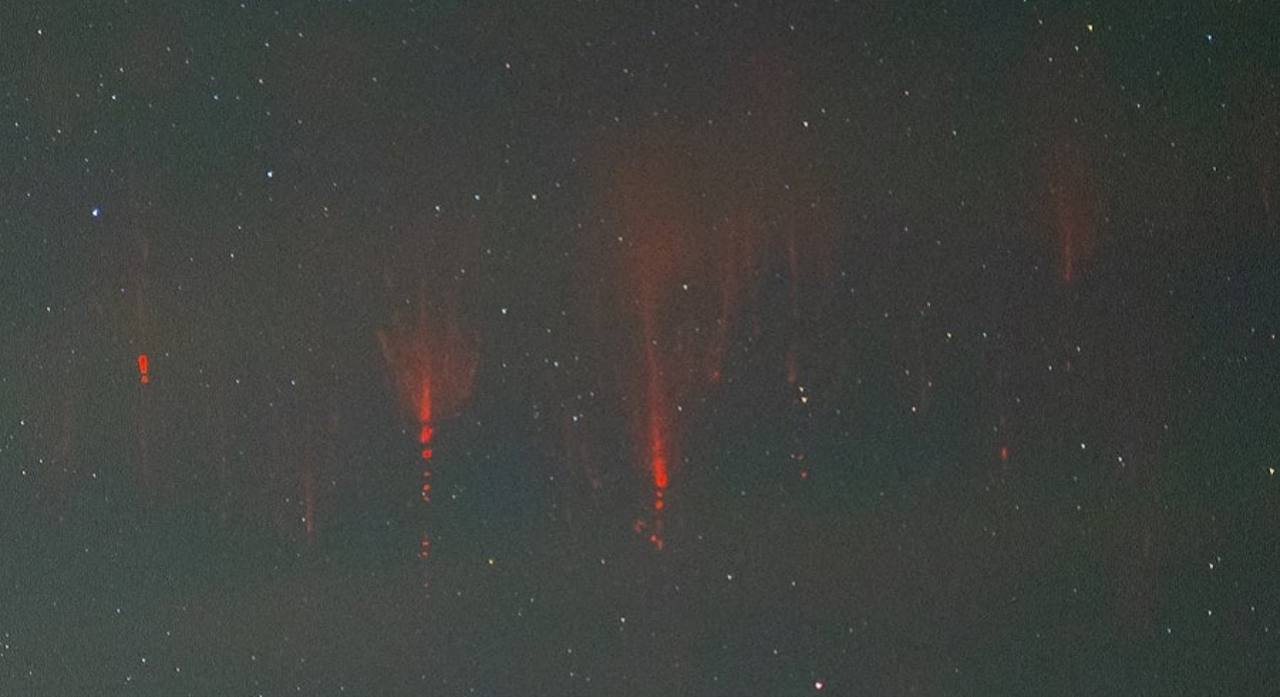 Это редкое явление, представляющее собой мощные электрические разряды высоко над грозовыми облаками. Спрайты зафиксированы на рассвете 2 ноября 2024 года на юго-западе острова.