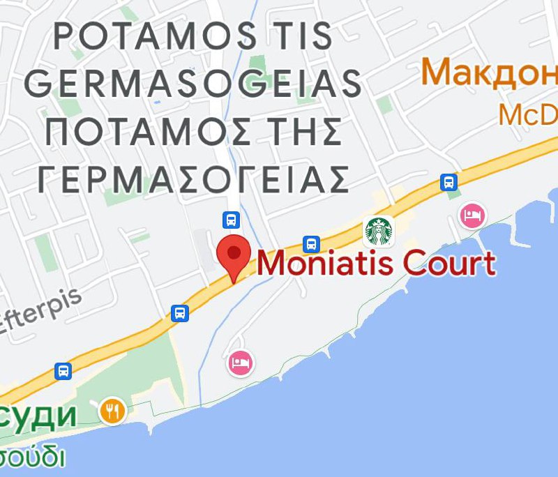 Moniatis court кажется называется здание, рядом с тайским салоном массажа