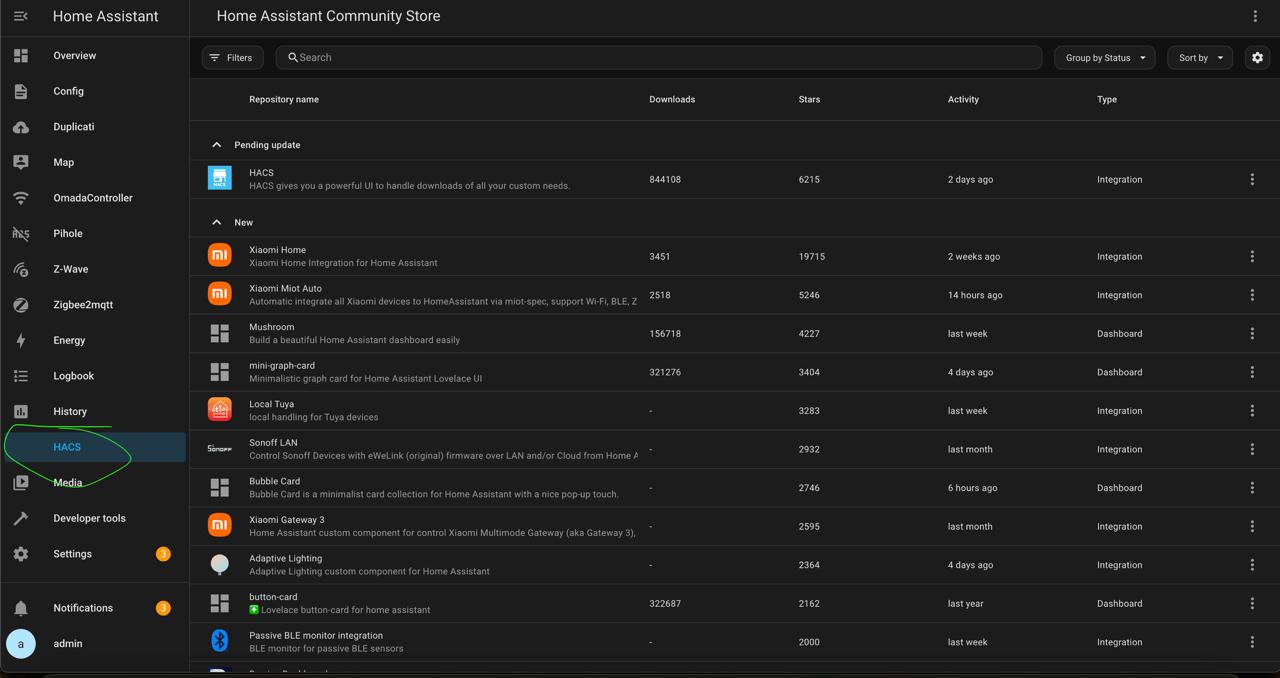 hacs в основном, сторонние адоны