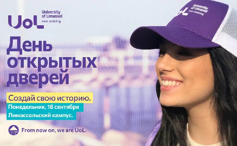 University of Limassol (UoL) приглашает на день открытых дверей, который пройдет в понедельник 18 сентября. Гости смогут посетить информационные занятия, ознакомиться с передовыми программами, узнать про стипендии, профориентацию и получить ответы на все интересующие вопросы.
