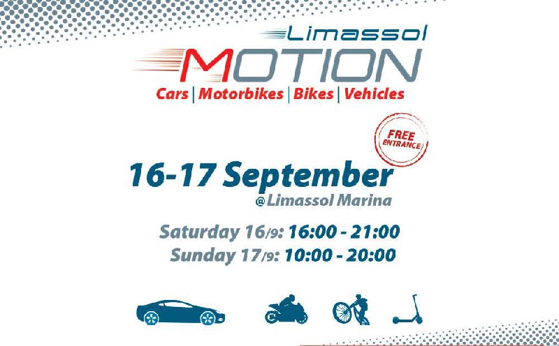 Остались считанные дни до открытия Limassol Motion show. Мероприятие будет проходить в Limassol Marina 16 и 17 сентября. Организаторы обещают впечатляющую экспозицию различных видов автомобилей, мотоциклов и инновационных видов транспорта. Кроме того, впервые на Кипре будет представлен гоночный симулятор.