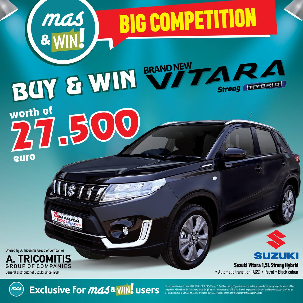 Примите участие в увлекательном конкурсе в супермаркетах MAS и выиграйте совершенно новую Suzuki Vitara 🚗