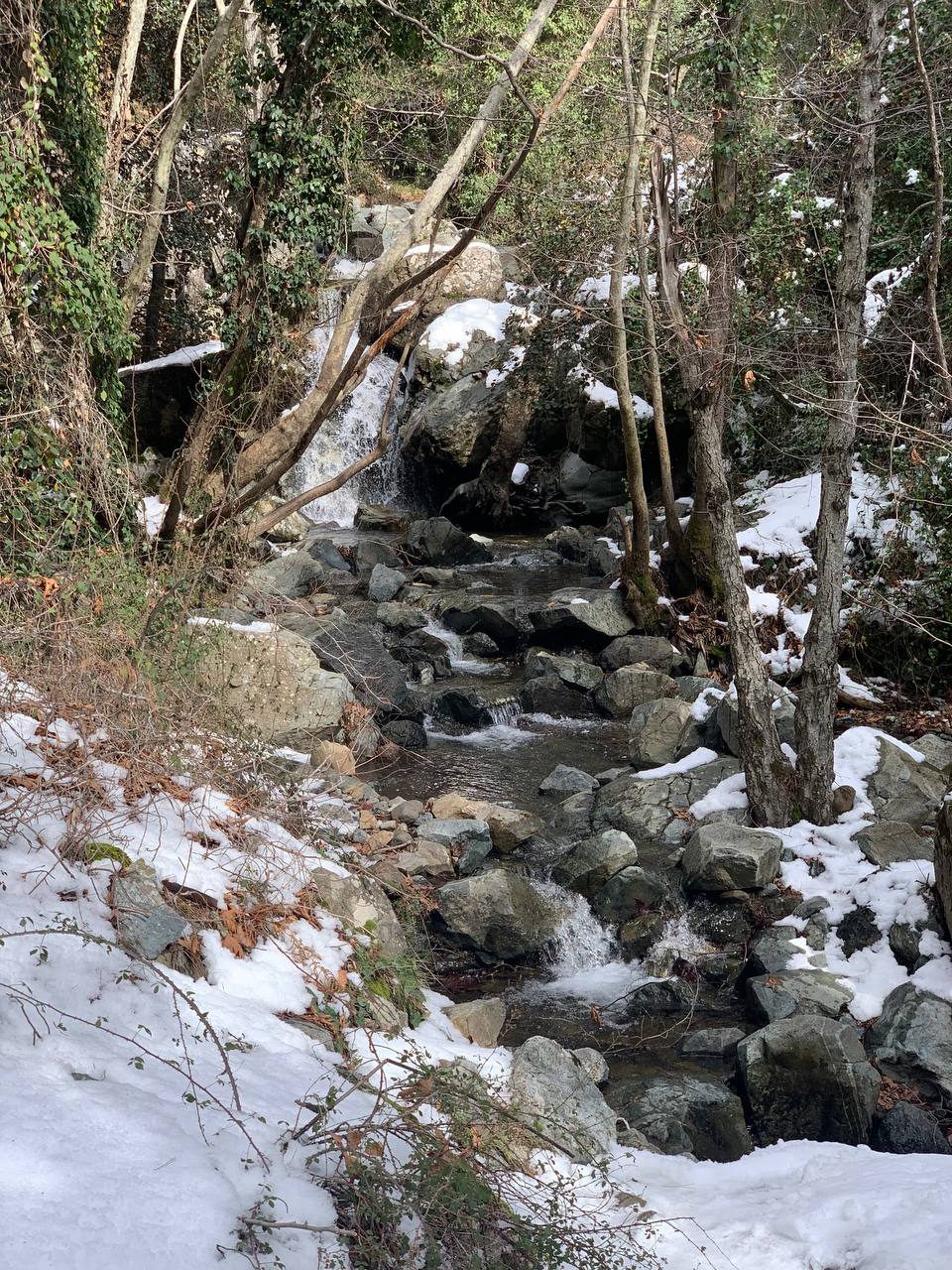 Я сегодня ездил в Продромос. В саму деревню ведёт полностью расчищенная дорога. Наверху куча снега. На развилке, которая на Олимп вела, стояла полиция и не пускала без цепей (но мне и без Олимпа хватило).