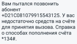 увидела тут тему со звонками мошенников "из банка", и хочу спросить: никто не знает, что за странное бывает обозначение телефонных номеров у Теле2 - идет звонок на включенную симку, но там денег нет, и теле2 присылает сообщение: "вам пытался позвонить абонент... " и номер выглядит примерно вот так: +D23C93538768768 - что это может быть такое? гугл нефкурсии