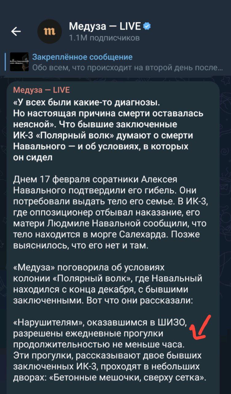 РИА Новости сообщает со ссылкой на управление ФСИН по ЯНАО, что Навальный после прогулки почувствовал себя плохо, практически сразу потеряв сознание.