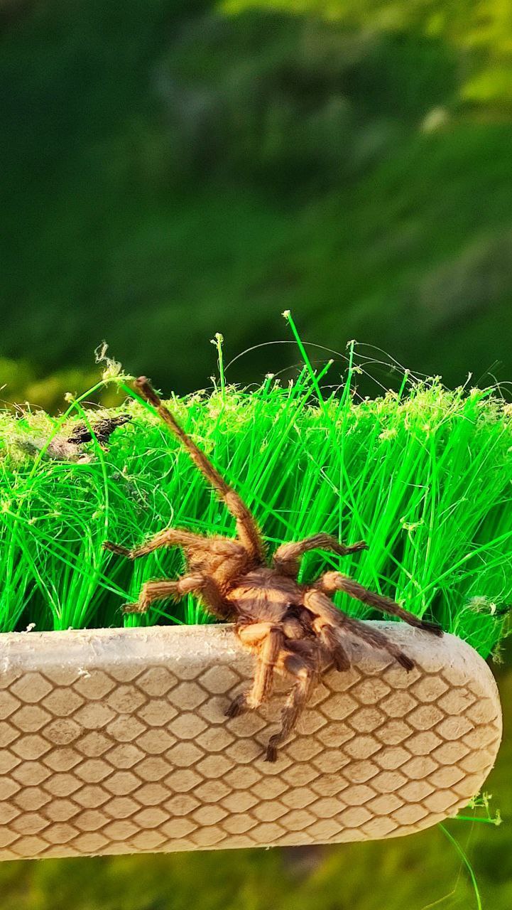 это точно тарантул? к нам немного другой приходил, вроде... European jumping spider 😉