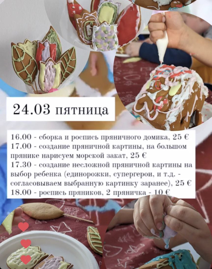 18.00 - роспись пряников, 2 пряничка - 10 € (+5 евро дополнительный)