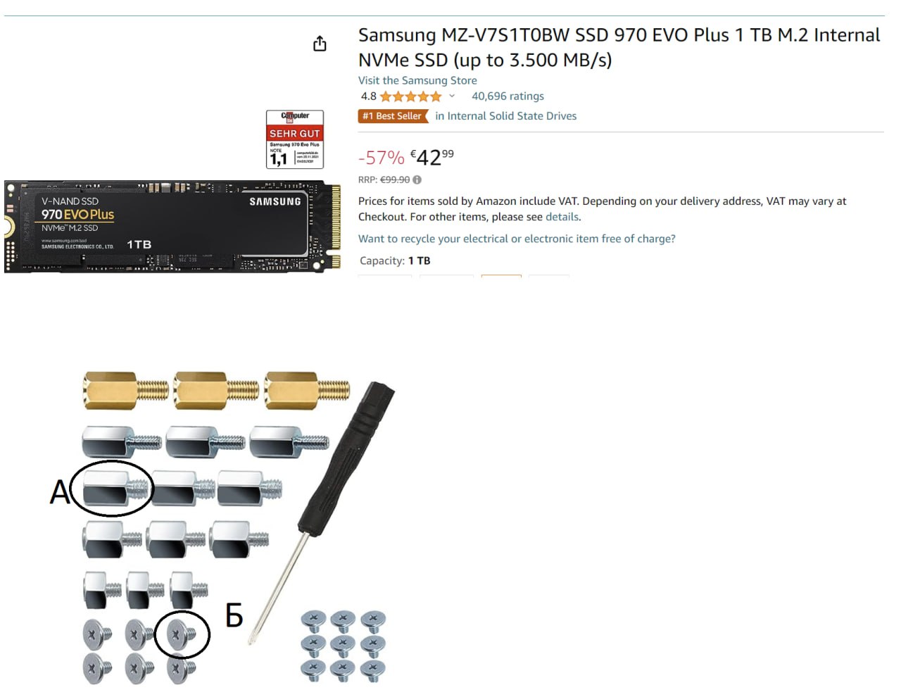 Есть кто собирал пк дома сам? Очень нужен болтик для крепления м2 ссд. Деталь Б на скрине. Я так понимаю, обычно в комплекте с материнкой запасной болтик идет