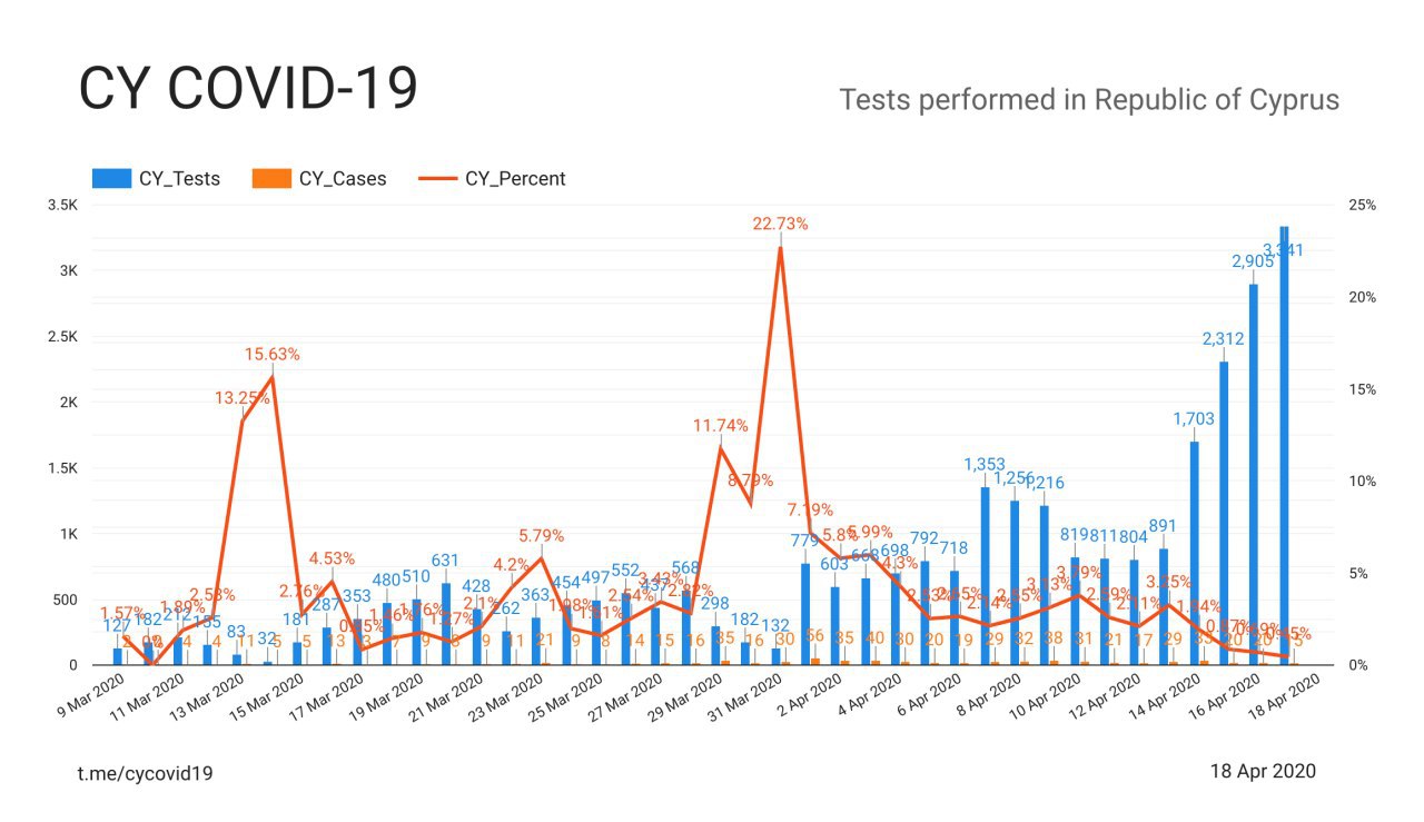Ретроспективно внесены по датам ВСЕ "проявленные" тесты в РК с самого начала эпидемии на Кипре.