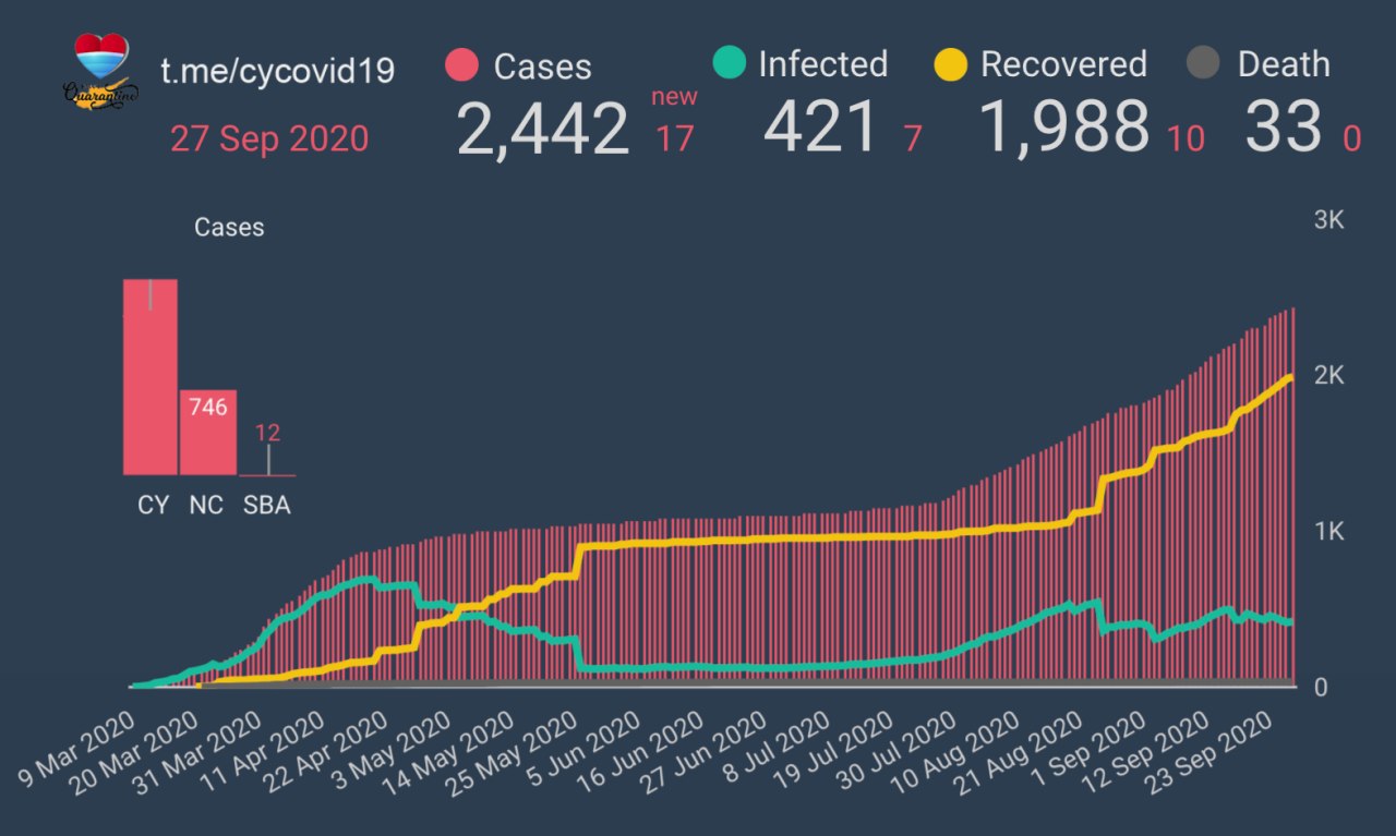 – Британский турист, прибывший 18.09 на отдых в провинцию Фамагуста. 27.09 у него появились жар, боль в горле и головная боль.