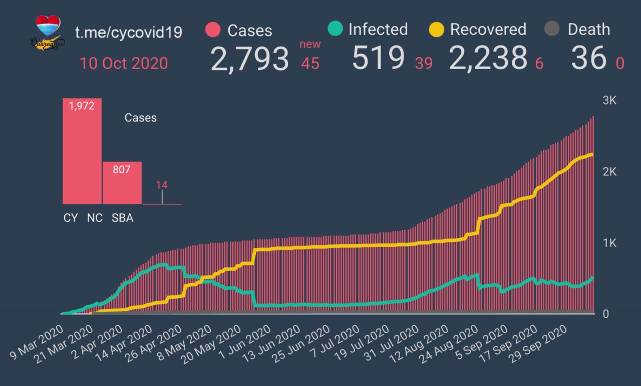 Общее количество заболевших уже преодолело рубеж в две тысячи (включая SBA и UNFICYP)