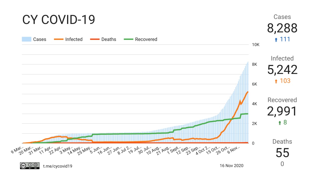 Согласно информации, семь из текущих случаев, выявленных посредством отслеживания контактов, происходят из дома престарелых Timotheio в округе Никосия, где случай был обнаружен в предыдущие дни.