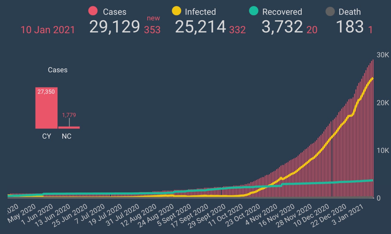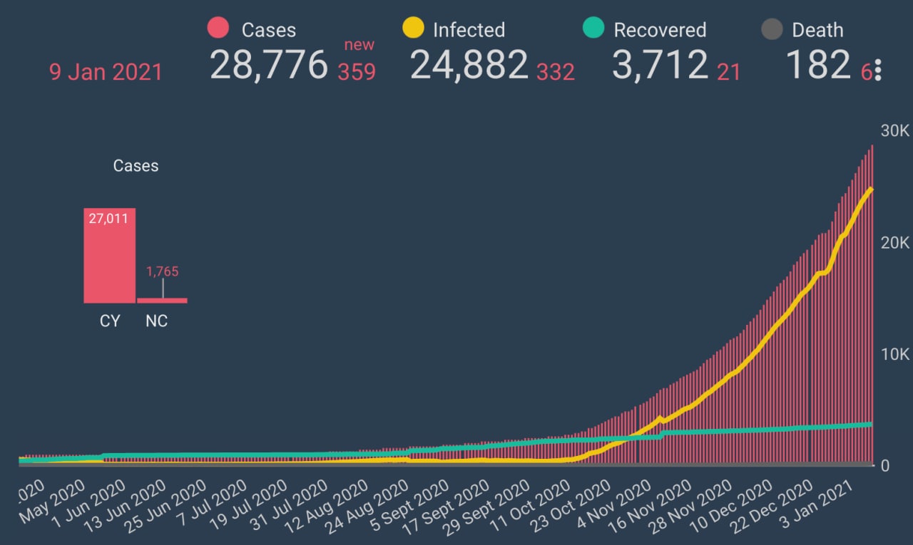 (данные по выздоровлениям вне больниц временно не обновляются из-за изменений процедур Минздрава Кипра)