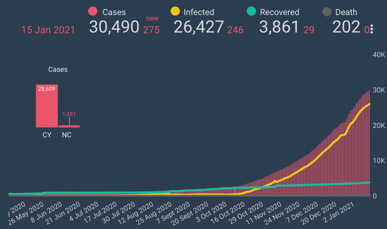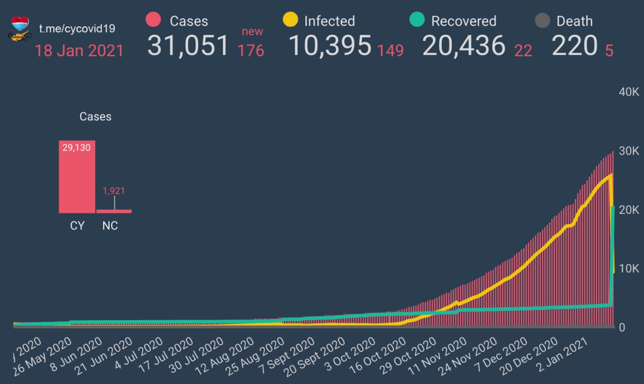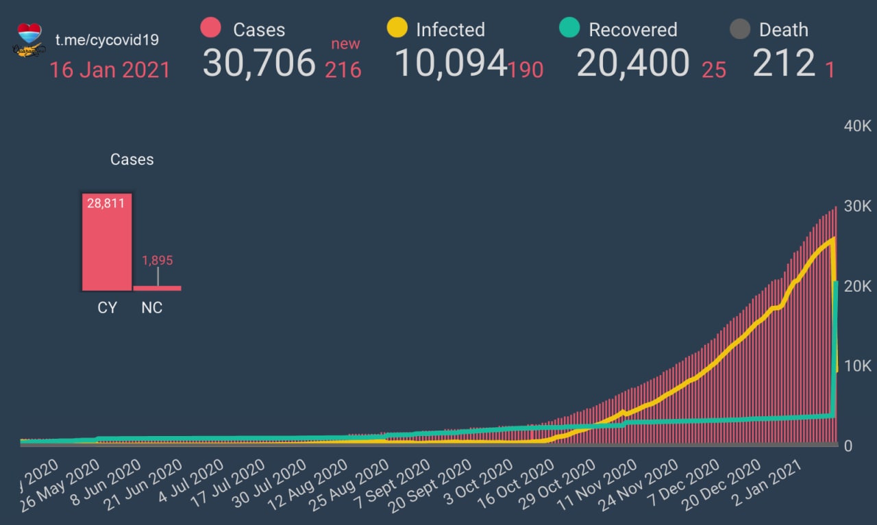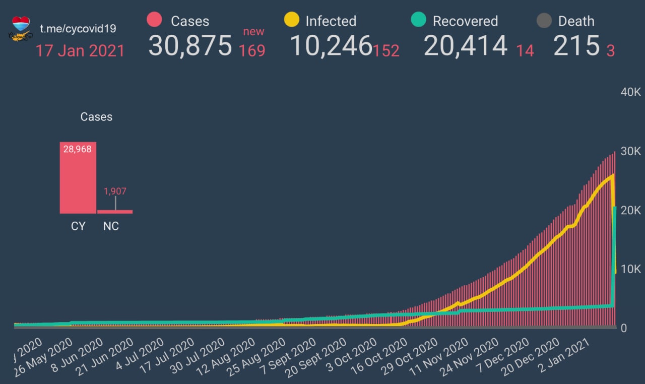 (данные по выздоровлениям вне больниц временно не обновляются из-за изменений процедур Минздрава Кипра)