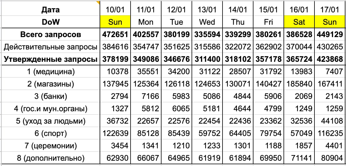 Так же в воскресенье возрастает количество запросов на посещение церквей или кладбищ.