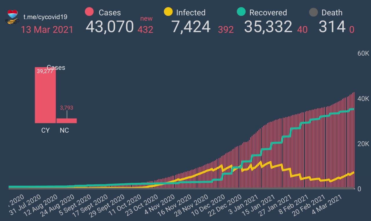 Статистика по COVID-19 на Кипре на 13.03
