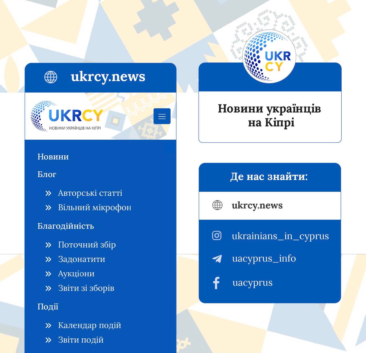 💙Дорогі українці💛, ми раді представити вам http://ukrcy.news - новинний ресурс українців 🇺🇦 на Кіпрі 🇨🇾.