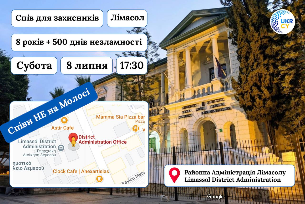 📍Цього разу проведемо Співи у незвичайній локації - перед будівлею Limassol district administration на вулиці Anexertisias - це велика шопінгова вулиця, народу має бути багато.