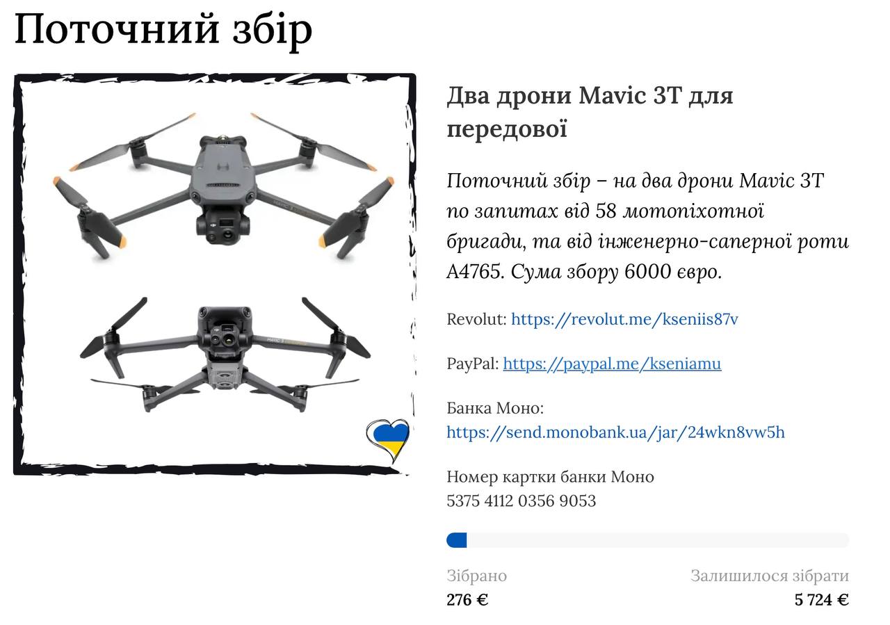 🙏 Аж ось знову зʼявилася можливість замовити Maviс 3T! Ми просимо вашої допомоги назбирати на два дрони 🦅🦅- саме їх і просять хлопці з передової у двох наступних запитах. Сума 6000 євро, але ми з вами ще і не такі дива робили 🦾.
