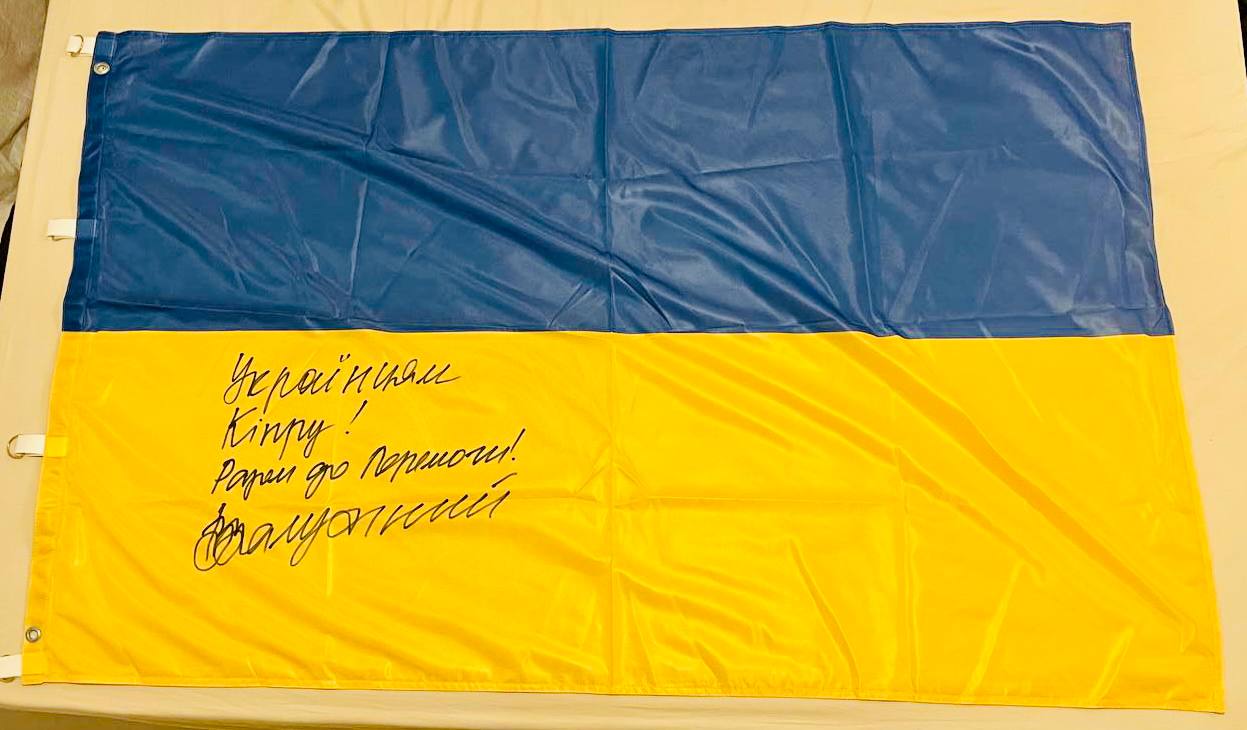 🇺🇦 великий прапор України із автографом Валерія Залужного спеціально для Українців Кіпру