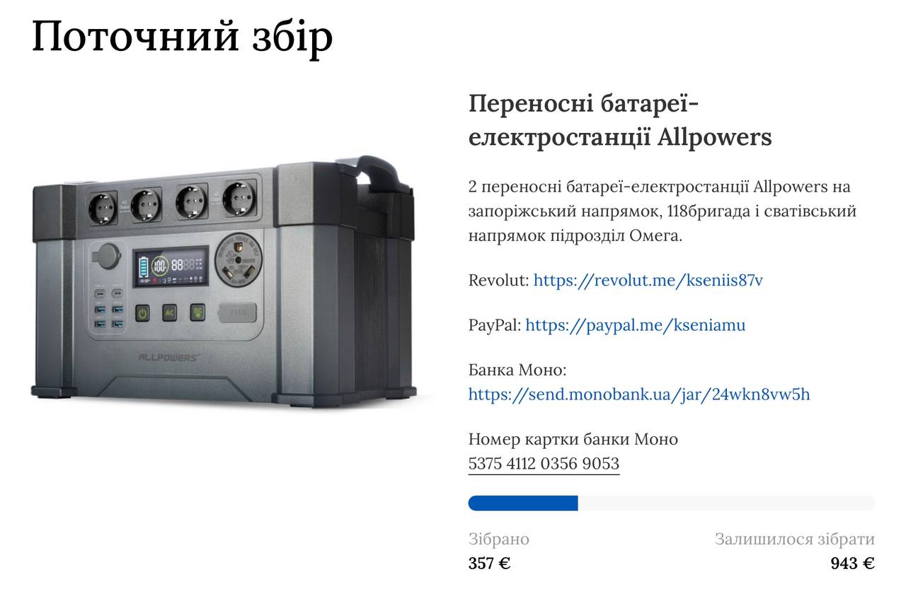 Треба зібрати ще 943 євро, щоб наші котики 😼 отримали так потрібні їм портативні електростації ⚡️. Збір: https://ukrcy.news/charity/