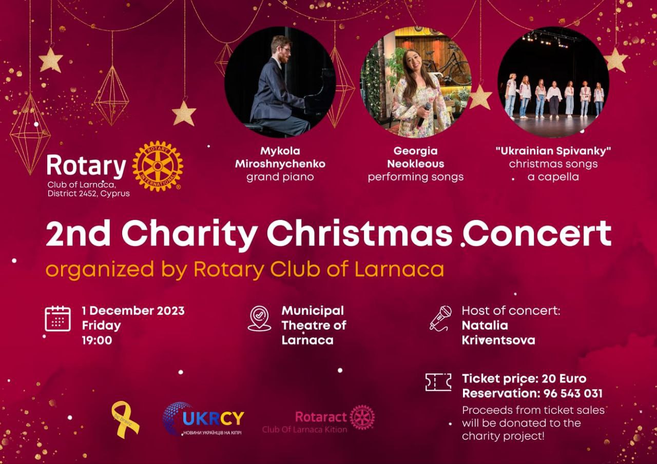 Ми раді запросити вас на найочікуванішу подію цієї зими - Charity Christmas Concert, який вже вдруге організовує Ротарі клуб «Ларнака». Концерт, що об'єднає в собі найкращі музичні традиції та доброчинність.