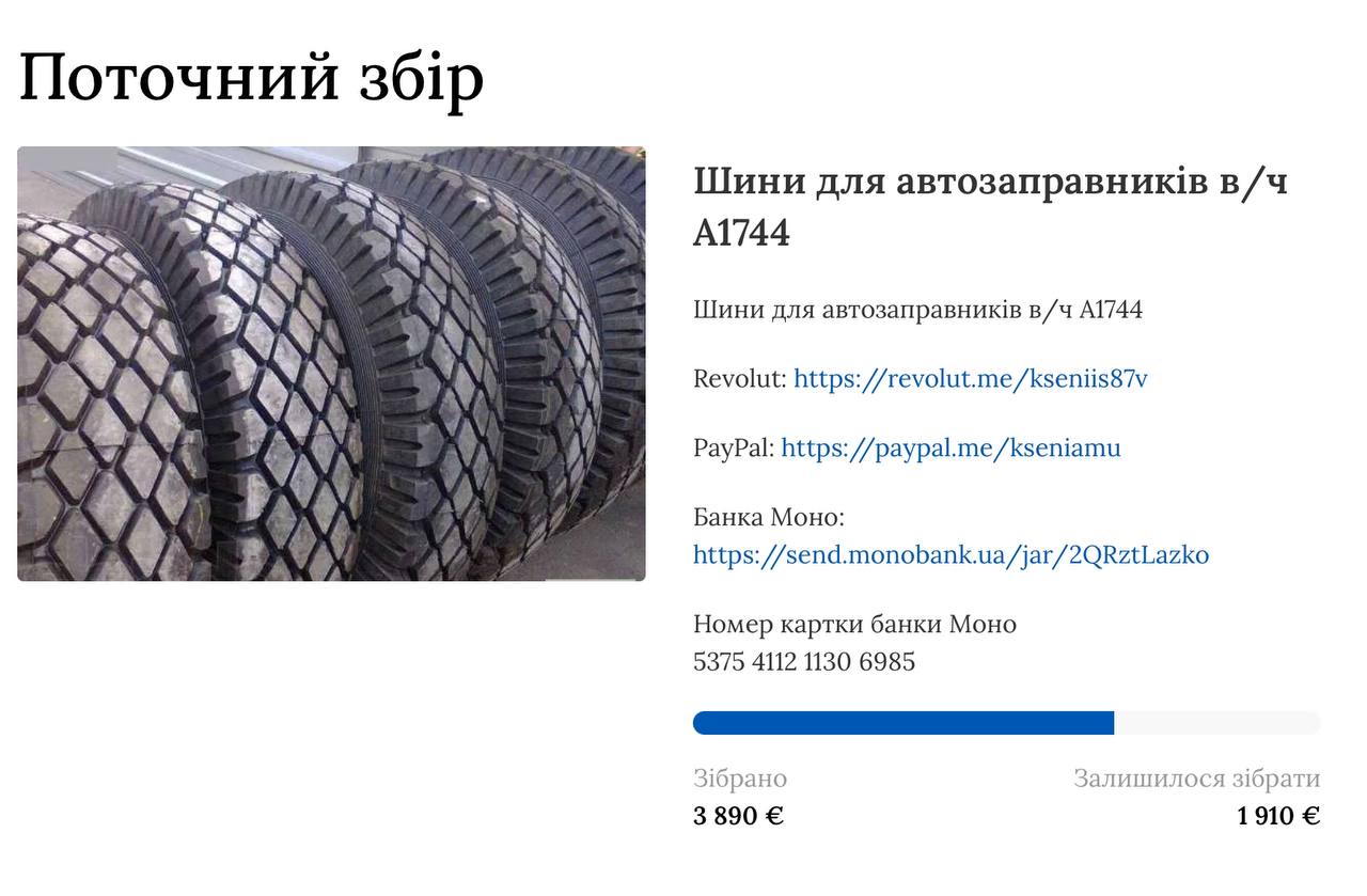 Аукціон, ярмарки, «водіння кози» і в результаті залишилося зібрати 1910 євро на поточний збір. Будь ласка, допоможіть зробити різдвяний подарунок нашим воїнам-автозаправникам, які доставлять на фронт паливо і мастило - те без чого не працює жодна техніка!