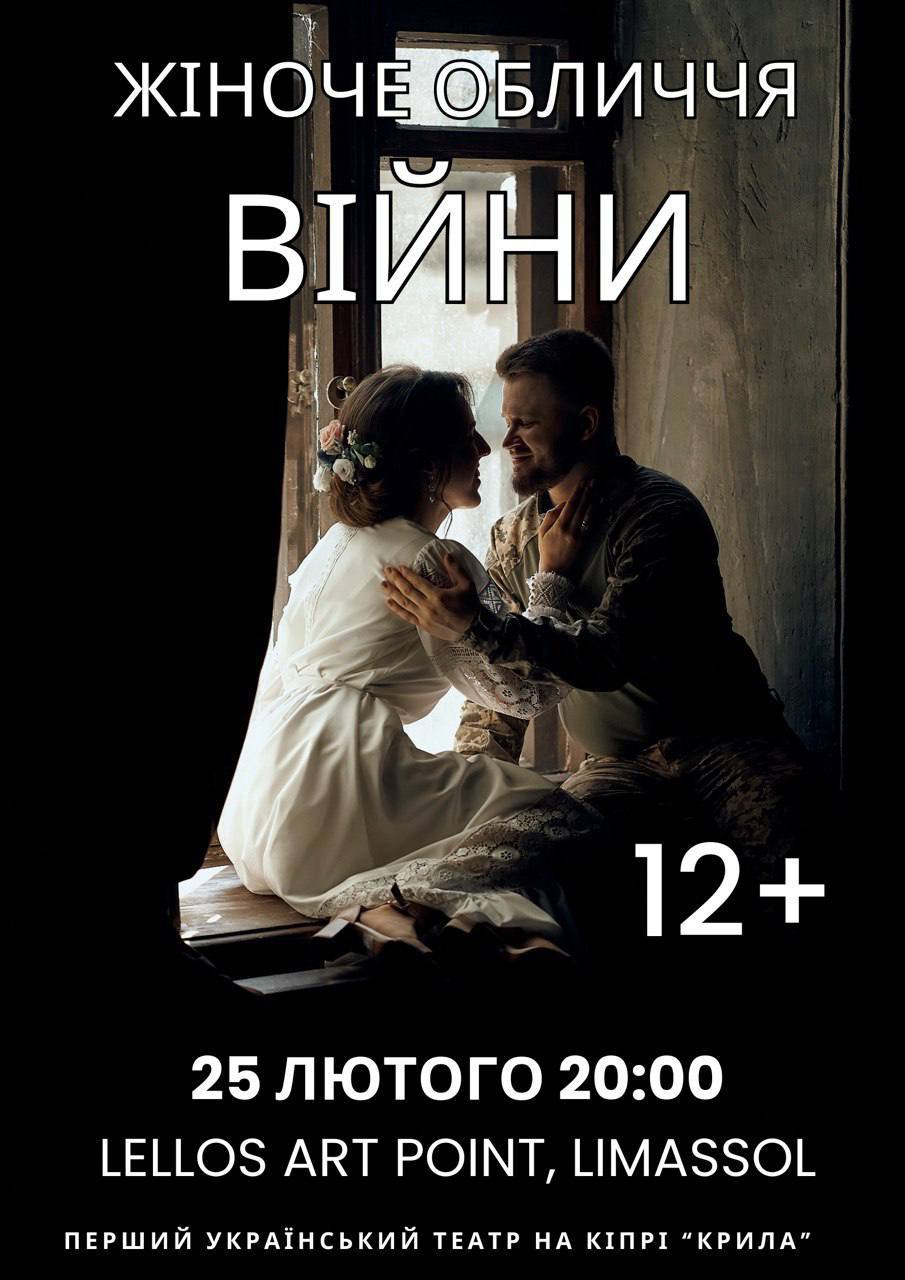 25 лютого о 20.00 Перший український театр на Кіпрі «Крила» запрошує на віршовану виставу «Жіноче обличчя війни» присвячену другим роковинам повномасштабного вторгнення.