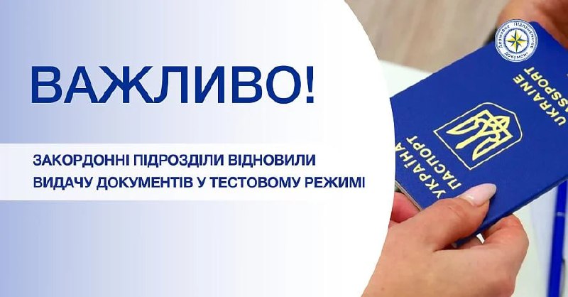 Увага, ДП "Документ" повідомляє, що закордонні підрозділи відновлюють видачу готових документів у тестовому режимі!