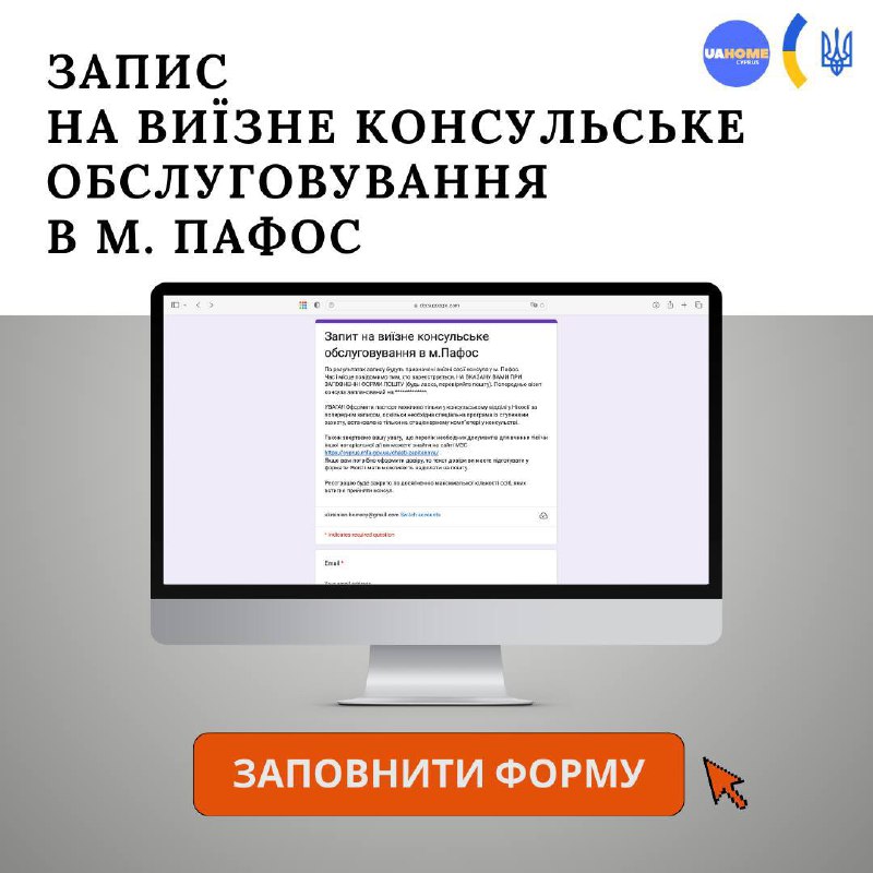 23 травня Консульським відділом Посольства України відбудеться виїздне консульське обслуговування громадян України, які проживають в Республіці Кіпр у місті Пафос.