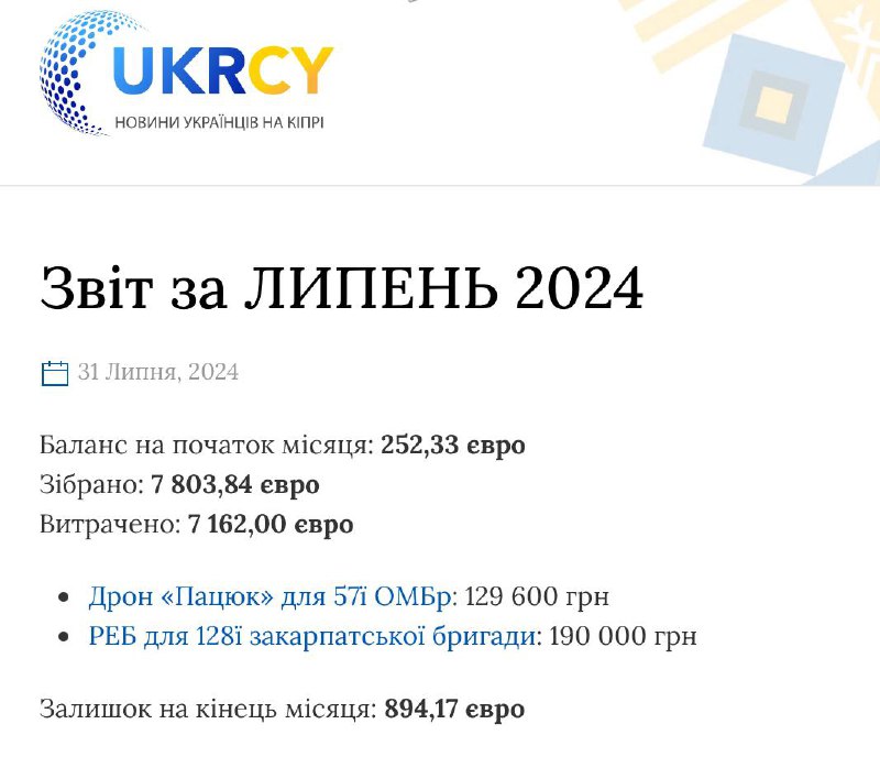 Вітаю! Зробила звіт по донатах за липень.