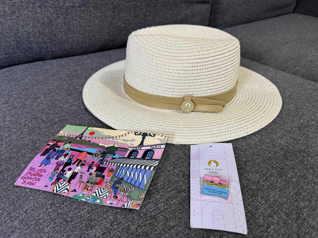Капелюх, значок і листівка з відкриття Олімпіади. Дякуємо українцям з Кіпру, які поділилися з нами цими сувенірами!