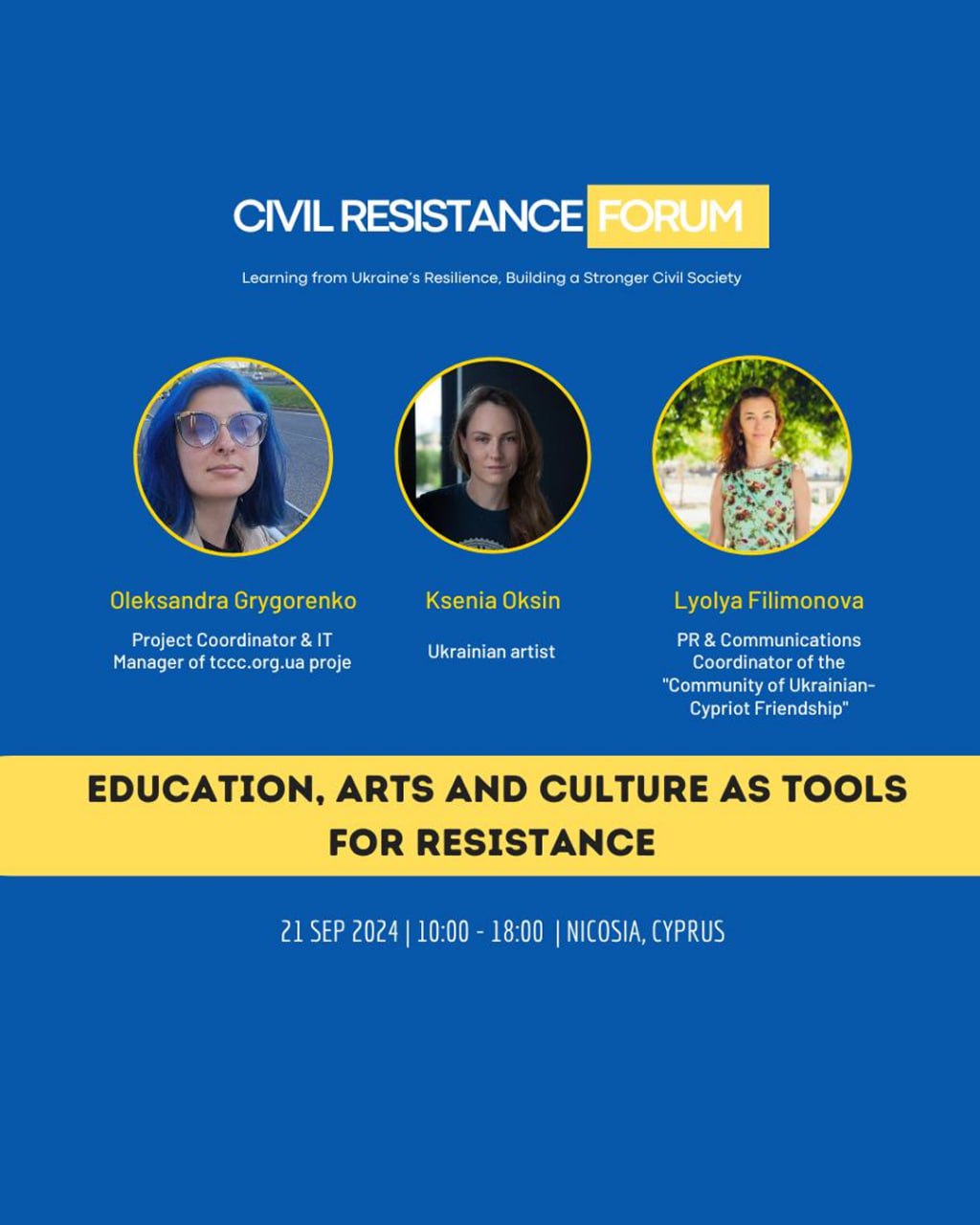 Civil Resistance Forum will offer a day of insightful discussions and presentations on the topic of civil resistance and its role in safeguarding democratic values, with a special focus on its relevance amid the ongoing Russian war in Ukraine. By examining the experience of Ukraine and other countries, we seek to identify common challenges and explore potential solutions.