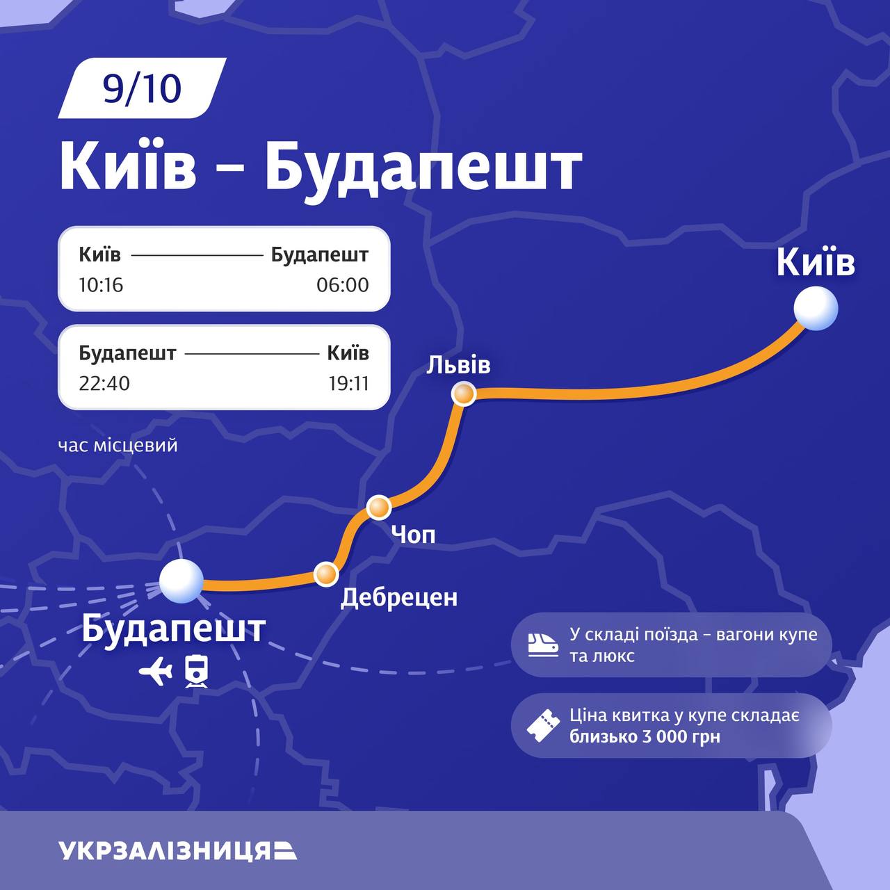 ➡️ Відправлення з Києва о 10:16, прибуття до Будапешта о 06:00.