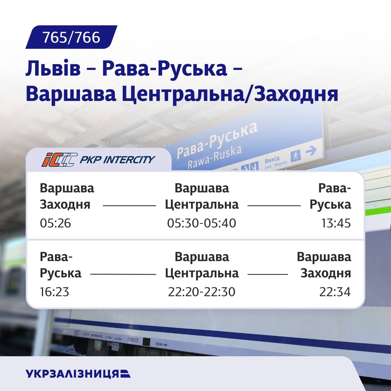 • Між Варшавою та Рава-Руською курсуватиме поїзд польської залізниці PKP Intercity;