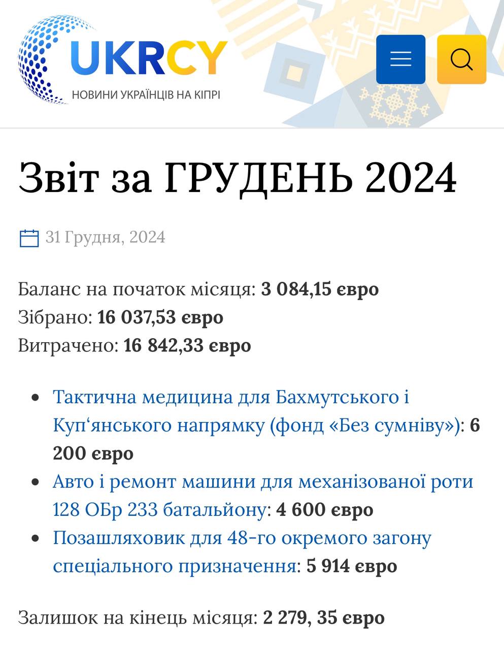 Дякую 🙏 всім, хто донатили, 🙏 хто організовували благодійні події: ярмарки, вистави, всім, 🙏 хто донатили лоти на лотереї, 🙏 бізнесам, які відправляють відсоток на збори. Цей результат наш спільний! 🤝 Дякую 🙏 всій громаді українців 🇺🇦 Кіпру 🇨🇾 за те, що ви не опускаєте руки і не забуваєте про захисників. Пишаюся бути частиною громади!