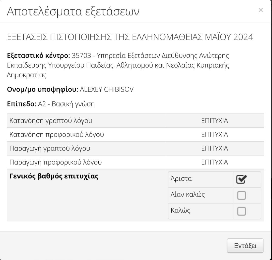 кто-то знает что значит: Άριστα/Λίαν καλώς/Καλώς? в миграции оперируют, вроде процентами - от 50% подходит ддля ВНЖ, от 60% для гражданства