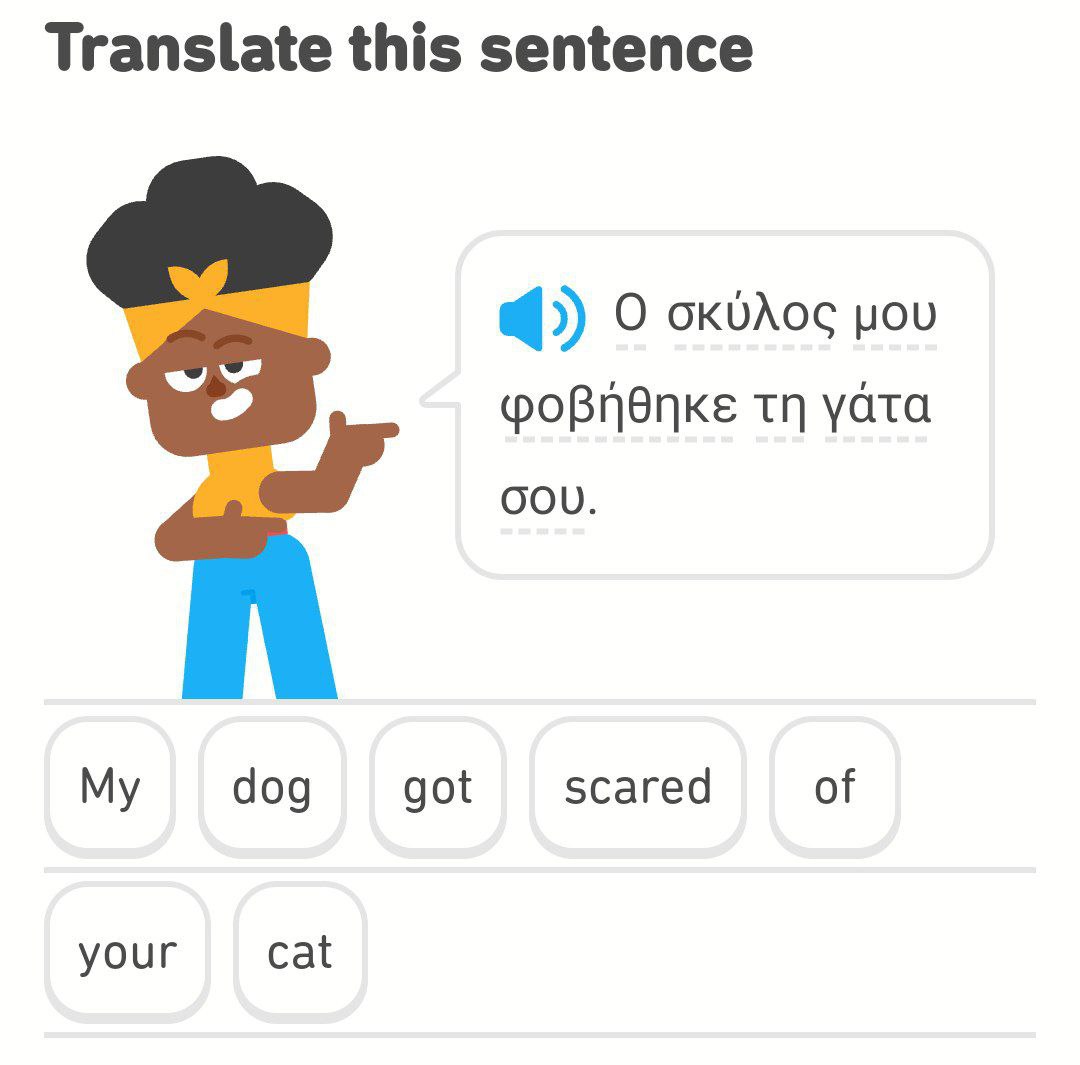 Насчёт того, что английский мешает - это факт, когда это предложение нужно перевести на греческий, я почему-то пишу από την γάτα σου, потому что в английском есть of