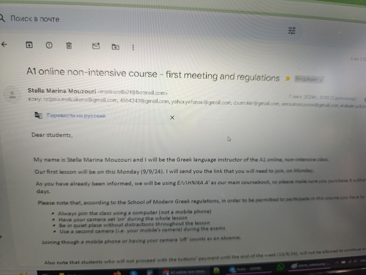 А кому-то из Пафоса приходило сообщение от KIE когда начинаются занятия?