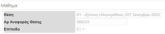 Σας ευχαριστούμε για το ενδιαφέρον σας για τις εξετάσεις πιστοποίησης της ελληνομάθειας Α2 ή Β1, οι οποίες θα διοργανωθούν από το Σχολείο Ελληνικής Γλώσσας τον Δεκέμβριο 2024 (18.12.2024 - 21.12.2024).