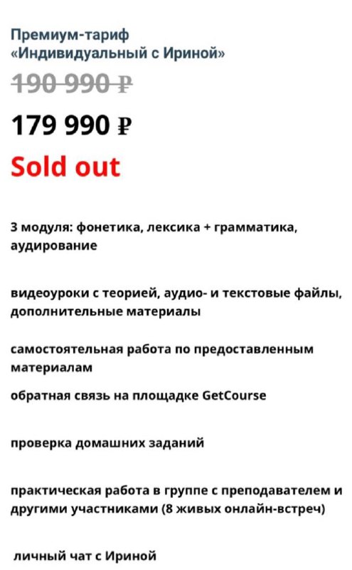 Интереса ради. А занимался/занимается кто-нибудь с преподавателем Ириной (Ессентуки)? Она довольна популярна в инсте. Очень хотелось бы отзывы услышать, действительно за 4 месяца с ней прям заговорить можно? Ценник на её индивидуальный курс слегка пугает, но может она действительно крута.