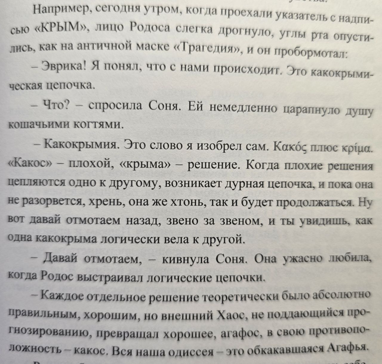 Вот, смотрите, Акунин решил нас "просветить" что-де топоним Крым происходит от слова κριμα. Двоечник его студент из этого диалога. И фантазер.