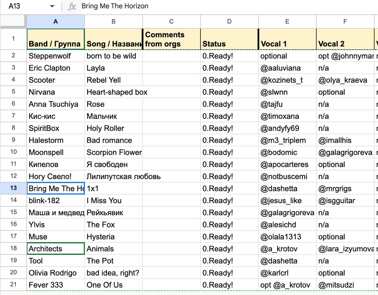 Ребят, киньте скрин сетлиста, пожалуйста, у меня что-то таблицы тупят