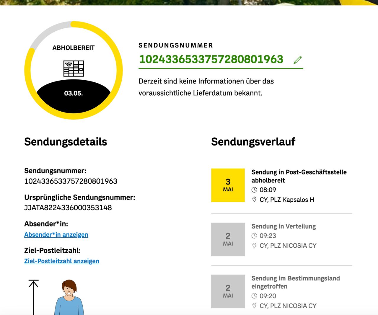 нет, она на сайте почты кипра вообще не будет трекаться, т.к. по кипру едет ACS