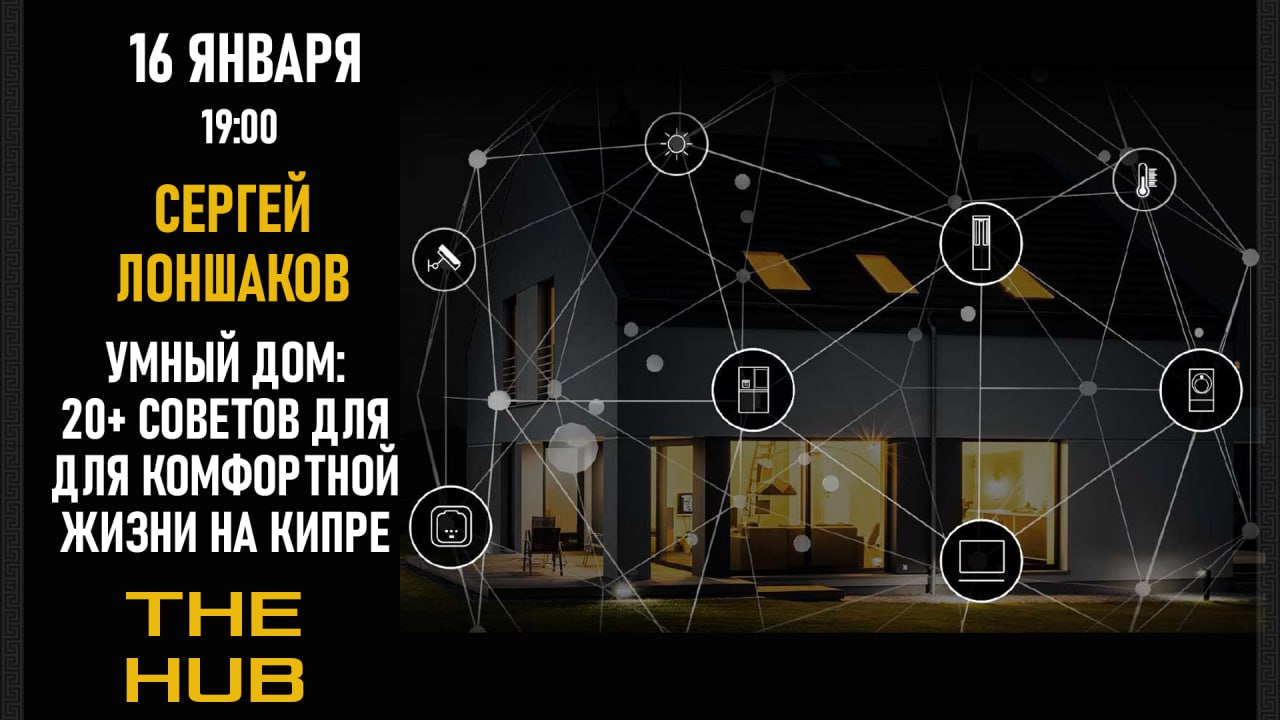 16 января я сублимирую полученный опыт в практические советы, применимые именно для жизни на Кипре. Мы пройдёмся по всем аспектам жилья, которые обычно вызывают трудности у экспатов на острове: горячая вода в феврале утром, управление климатом в разные периоды года, энергомониторинг жилья, особенности тёплых полов и как жить без них, защита от протечек в частных домах, удалённый мониторинг жилья, когда вас нет на острове, защита от краж. И не только!