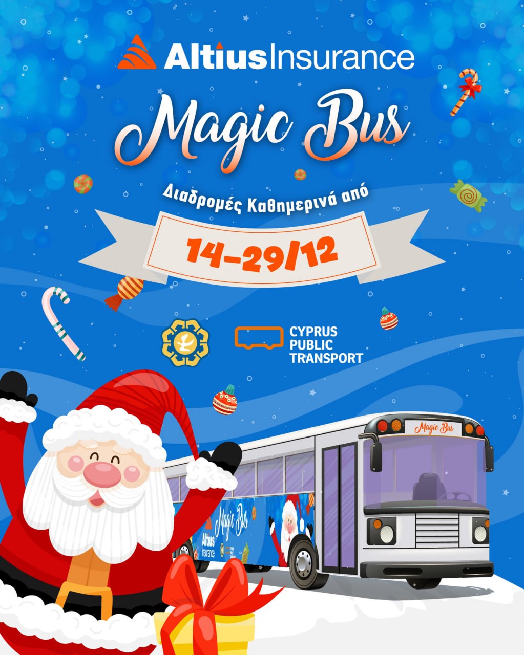 Еще один праздничный автобус курсирует по Никосии ALTIUS MAGIC BUS. Муниципалитет Никосии в сотрудничестве с Общественным транспортом Кипра и Altius Insurance Cyprus приглашает вас пережить самое волшебное рождественское путешествие.