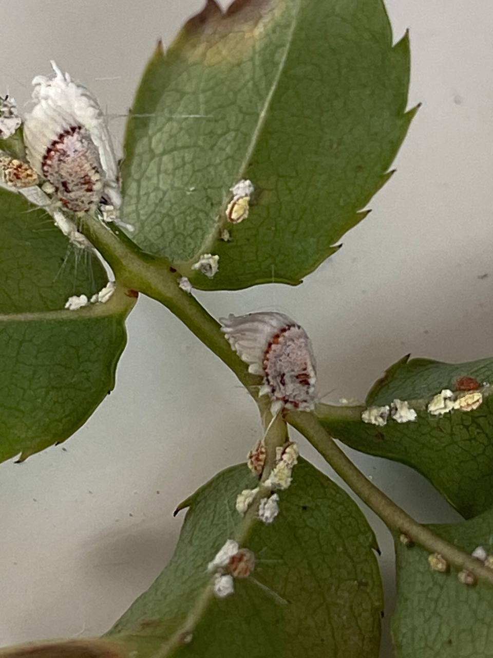 @8417554925Щитовка саму не увидела,но если приблизить как будто на черешке такая пушистенькая белая фигня есть.это может быть как раз ложнощитовка там,лень искать из моря фоток,но я с ней познакомилась в прошлом году на розах.та еще дрянь.сначала только эти комочки были,я не знала что это такое.а потом уже появилось эта гадость.все-таки не поленюсь,сейчас найду
