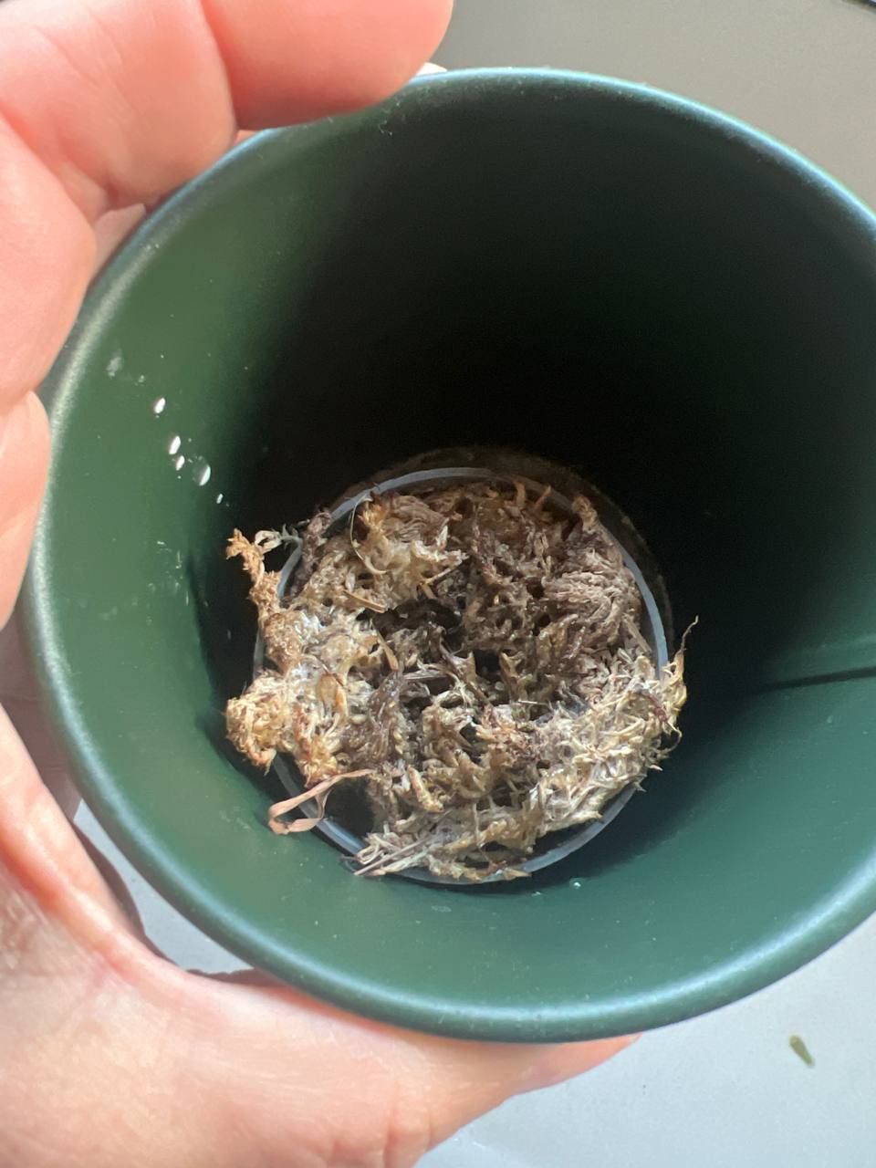 Вытащи её из темного стакана , увлажни мох и поставь в пакет в светлое место. Тепличка будет отлично работать