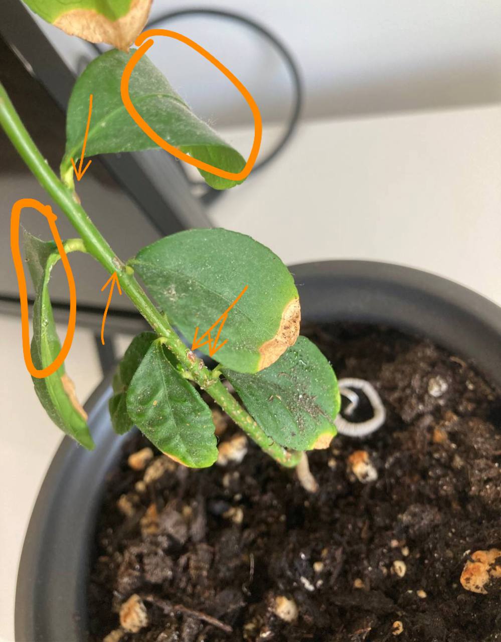 Стрелками у вас сидят щиточки. Их надо убрать. Дерево не большое, уберите пинцетом. Посмотрите под листиками. Регулярно делайте осмотр, убирайте их.